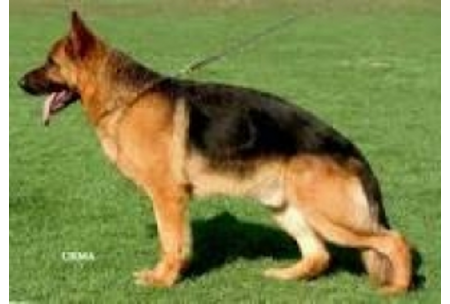 | Keurbericht Groß, sehr typ- und ausdrucksvoll, trocken und fest, sehr gutes Verhältnis. Harmonische Ober- und Unterlinie, ausgeglichene Brutsverhältnisse, sehr gute Gesamtwinkel, vorne und hinten geradegehend, sehr kraftvolle, raumgreifende Gänge. Sicheres Wesen, Triebverhalten, Selbstsicherheit, Belastbarkeit ausgeprägt; läßt ab. HER:'03. Sehr gute Verfassung. DNA.gepr. |
