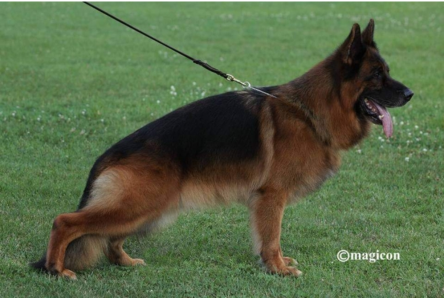 | Keurbericht Übermittelgroß, kräftig, sehr typvoll, richtiges Gebäudeverhältnis, hoher Widerrist, schöne Oberlinie, sehr gute Kruppe in Länge und Lage, sehr gute Winkelung in der Vor- und Hinterhand, ausgeglichene Brustverhältnisse, gerade Front, bei korrekter Schrittfolge zeigt er schwungvolle Gänge mit sehr viel Raumgewinn. Triebverhalten, Selbstsicherheit, Belastbarkeit ausgeprägt. HER::'17. Sehr gute Verfassung. DNA.gepr. |