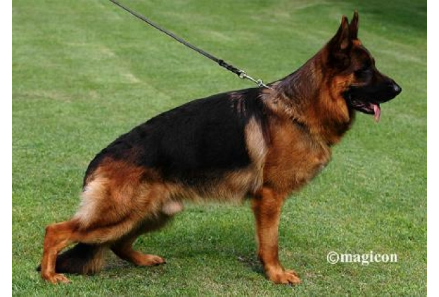 Keurbericht Groß, kräftig mit lobenswertem Gepräge. Sehr guter Kopf, sehr gute Ober- und Unterlinie, korrektes Höhen-Längenverhältnis. Sehr gute Winkelungen, gerade Front. Ausgewogene Brustverhältnisse, vorne und hinten geradetretend, mit lobenswertem Vortritt und kräftigem Nachschub. Sicheres Wesen, Triebverhalten, Selbstsicherheit, Belastbarkeit ausgeprägt; läßt ab. DNA.gepr. |