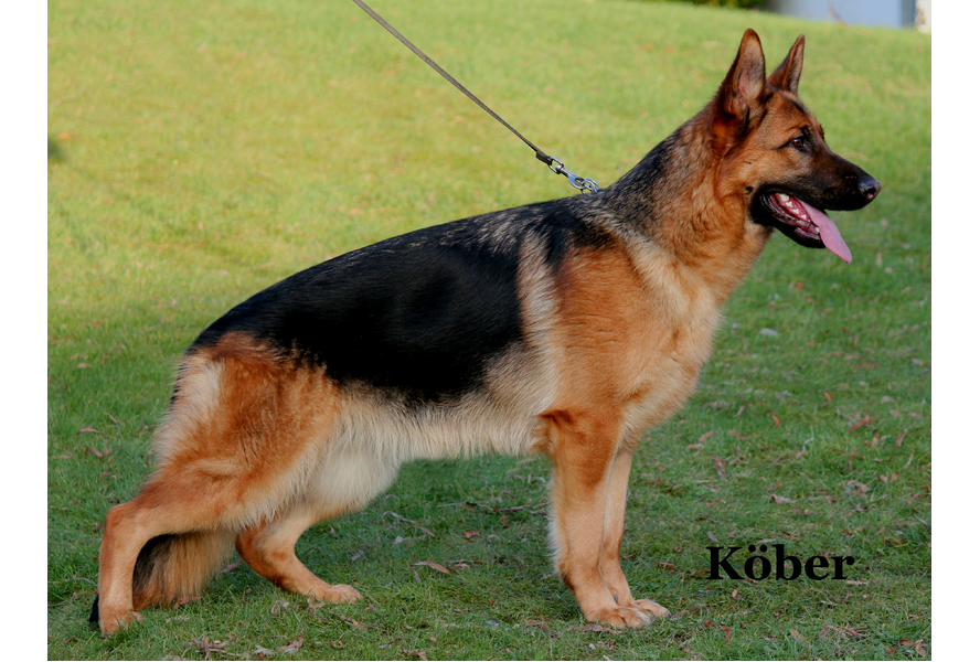 | Keurbericht Sehr typ- und ausdrucksvolle, trockene und feste Hündin. Sehr gute Gebäudeverhältnisse, hervorragender Linienführung, sehr gute Winkelung der Vor- und Hinterhand, gerade Front und Schrittfolge, vorne leicht engtretend, weit ausgreifende, kraftvolle Gänge mit betontem wirksamem Nachschub und freiem Vortritt. Sicheres Wesen, Triebverhalten, Selbstsicherheit, Belastbarkeit ausgeprägt; läßt ab. |