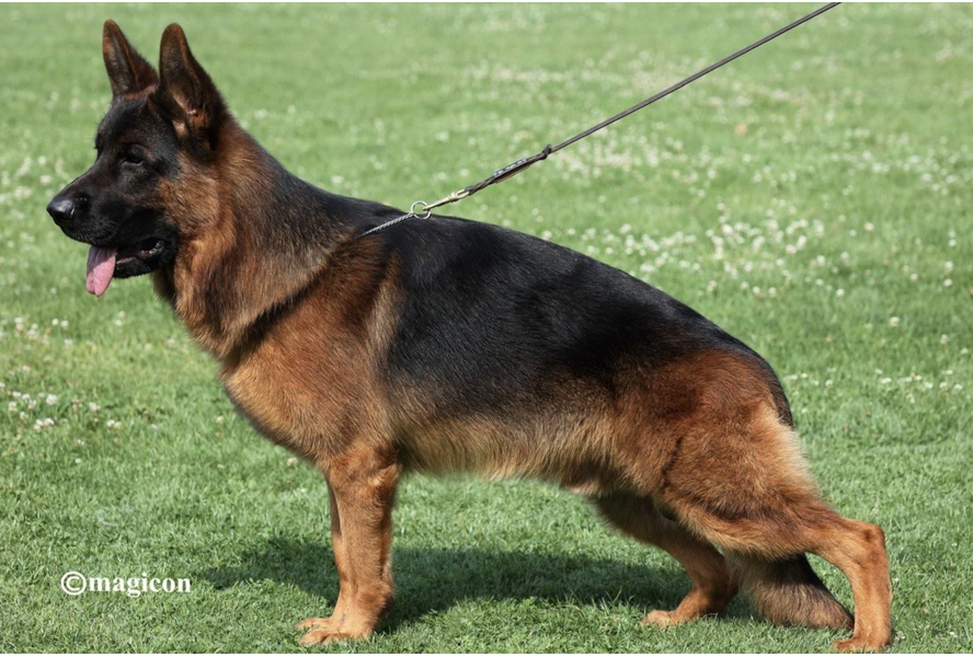 | Keurbericht | Übermittelgroß, kräftig und gehaltvoll, gute Gebäudeverhältnisse. Hoher, langer Widerrist, fester Rücken, gute Länge und Lage der Kruppe, sehr gute Winkelungen der Vor- und Hinterhand. Gerade tretend, kraftvolle Gänge mit raumgreifendem Vortritt und wirksamen Nachschub. Sicheres Wesen, Triebverhalten, Selbstsicherheit, Belastbarkeit ausgeprägt. DNA.gepr. |