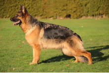 | Keurbericht Een grote substantievolle, middelkrachtige droge en vaste teef met goede lichaamsverhoudingen, goede uitdrukking, goed gepigmenteerd. Hoge, lange schoft en de croupe heeft een goede ligging en is iets afvallend. Voor goed, achter zeer goed gehoekt. Uitgesproken borstverhoudingen en recht front. Voor en achter gaat ze correct, ze toont krachtige ruim uitgrijpende gangen. Zeker Karakter. Drift, Zelfverzekerdheid, Belastbaarheid uitgesproken. DNA.gepr. |