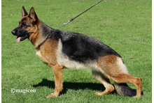 Keurbericht | Großer, kräftiger Rüde mit maskulinem Kopf. Hoher Widerrist, gerader Rücken, gut gelagerte, genügend lange Kruppe. Sehr gute Hinterhand, gute Vorhandwinkelung, ausgeglichene Brustverhältnisse, gerade Front. Hinten eng, vorne gerade tretend, zeigt er drangvolle, raumschaffende Gänge, bei korrekter Gleichgewichtslage. Wesen sicher, Triebverhalten, Selbstsicherheit, Belastbarkeit ausgeprägt. DNA.gepr. |