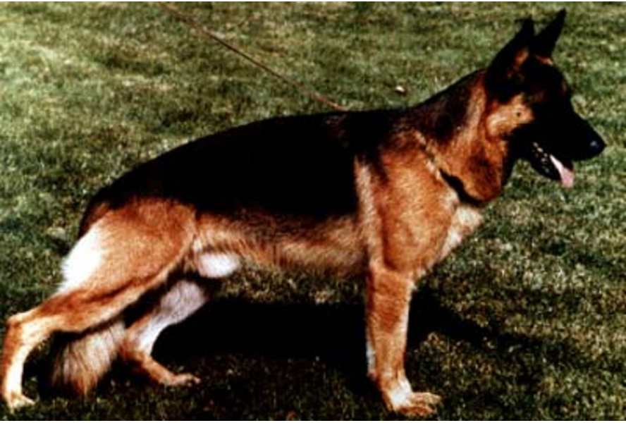 Keurbericht | Mittelgroßer, mittelkräfiger, typund ausdrucksvoller, in sehr gutem Verhältnis aufgebauter, trockener, fester Rüde.Hoher Widerrist, gute Rückenlinie, gute Länge und Lage der Kruppe. Gute Winkelungen der Vorund Hinterhand, ausgeglichene Brustverhältnisse, korrekte Front und Schrittfolge. Sehr raumschaffende Gänge, wirksamer Nachschub und freier Vortritt. Sicheres Wesen, Härte, Mut und Kampftrieb ausgeprägt, läßt nicht ab. HER: '88. Sehr gute Weiterentwicklung. |